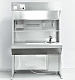 Система вентиляции с пропускной способностью 850 м3/час. (Распологается в основании стола, вертикальный нисходящий поток, производительность 850 м3/ч, возможность регулировки скорости вращения вентилятора (не менее пяти фиксированных режимов), вытяжка через перфорированные панели рабочей поверхности стола)